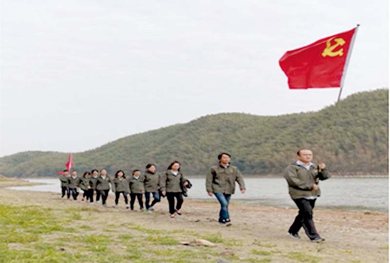 在莊嚴(yán)肅穆的革命烈士陵園中,青松傲立,翠柏挺拔,鐫刻在烈士紀(jì)念碑上的“蒲圻革命烈士紀(jì)念碑”9個大字熠熠生輝,在鮮紅的黨旗下,全體黨員高舉右手,在紀(jì)念碑前再度重溫入黨誓詞并深鞠躬默哀。