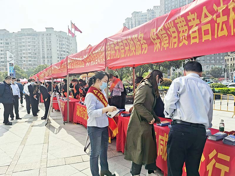 昨日,我市舉辦2022年國際消費(fèi)者權(quán)益紀(jì)念日活動(dòng)?;顒?dòng)現(xiàn)場,市直各金融機(jī)構(gòu)并排設(shè)立金融咨詢服務(wù)臺(tái),形成金融宣傳一條街,開展消費(fèi)者權(quán)益保護(hù)教育。