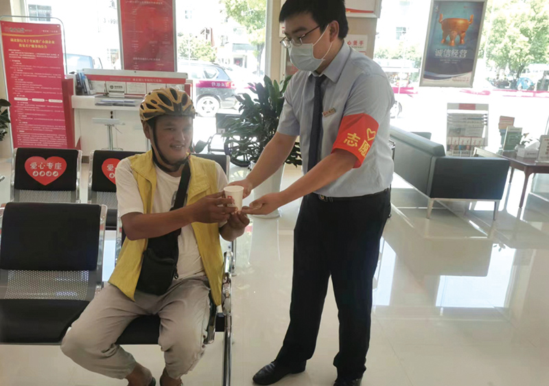 一杯水、一聲問候、齊備的設(shè)施,“愛心驛站”讓整個營業(yè)大廳變得更加溫馨。而一張笑臉相迎,一聲問候暖心,一杯涼水解渴,讓戶外勞動者在炎炎夏日,更感受到一份清涼。