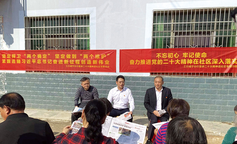 2022年11月8日上午,在咸安區(qū)永安辦事處西河社區(qū)五組,一場別開生面的黨的二十大精神宣講會正在進行,該行黨委書記秦強通過互動問答的方式向近三十名居民分享了學(xué)習(xí)黨的二十大精神的收獲和體會,讓黨的二十大精神“飛入尋常百姓家”。