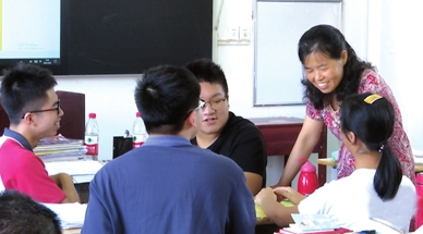 課堂上,學(xué)生們興趣盎然,分小組討論自己的所見所聞,互相之間提出文稿的修改意見。