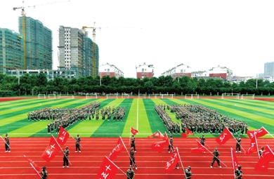 5日,鄂南高中體育場(chǎng),在飛揚(yáng)的軍歌和嘹亮的口號(hào)聲中,該校2021年新生軍訓(xùn)匯報(bào)表演拉開(kāi)帷幕。