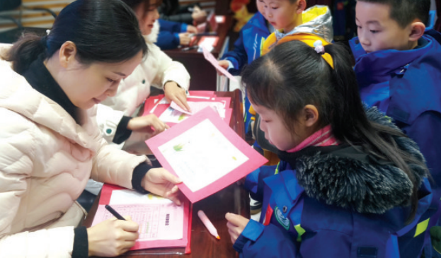 “來(lái),排好隊(duì)”“小朋友,我們做個(gè)游戲可以嗎?”1月6日上午,咸安區(qū)外國(guó)語(yǔ)實(shí)驗(yàn)小學(xué)一年級(jí)知識(shí)游園會(huì)正式開(kāi)始。老師按照班級(jí),給每個(gè)學(xué)生編號(hào),大家胸前貼著號(hào)碼,在學(xué)術(shù)報(bào)告廳門(mén)口依次排隊(duì),等待老師叫號(hào)入場(chǎng)。入場(chǎng)后的學(xué)生,在老師的引導(dǎo)下一一參加面試。