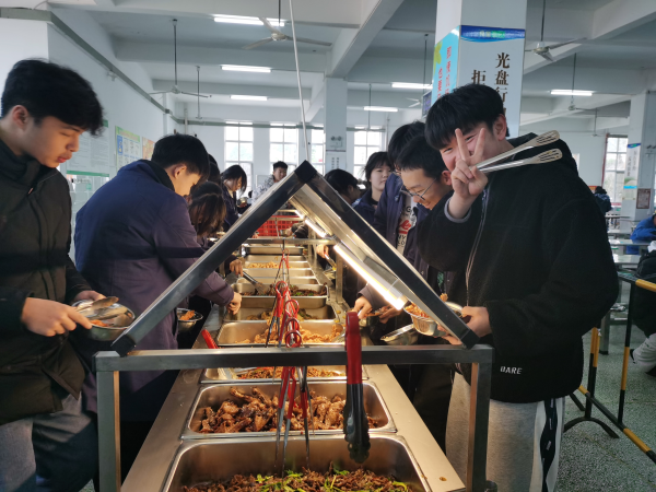 咸寧東方外國(guó)語(yǔ)學(xué)校高二學(xué)生說(shuō):“這學(xué)期食堂的菜比原來(lái)更豐富了,每天都有十幾個(gè)菜品供品我們選擇,即使再挑食也能找到自己喜歡吃的菜品,有葷有素,味道很好。”