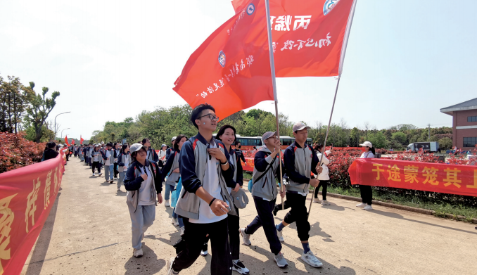 4月2日7時(shí),鄂南高中高二年級(jí)1200多名師生踏著春風(fēng)出發(fā),從校門(mén)口徒步40公里。一路上,紅旗迎風(fēng)飄揚(yáng),遠(yuǎn)足口號(hào)整齊劃一。