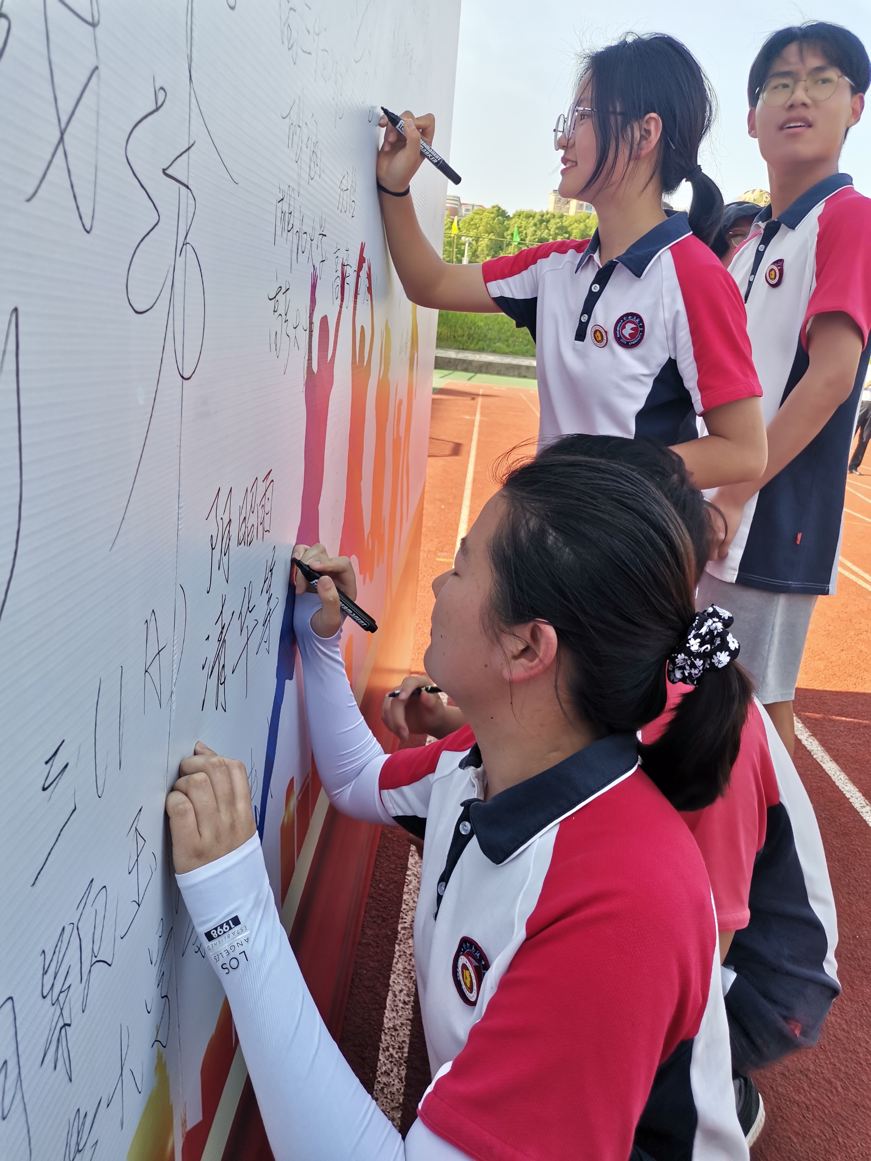 活動(dòng)現(xiàn)場(chǎng),還以班級(jí)為單位開(kāi)展了踩氣球,按摩操等歡快的賦能減壓活動(dòng)和高考簽名墻簽名活動(dòng)。