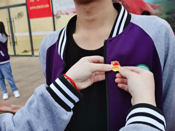 團(tuán)委書記張婷宣讀2022年新團(tuán)員名單,共有84名同學(xué)光榮地成為了中國(guó)共產(chǎn)主義青年團(tuán)的一員,并由老團(tuán)員向新團(tuán)員分發(fā)佩戴團(tuán)徽,出團(tuán)旗,新老團(tuán)員面向團(tuán)旗宣誓。