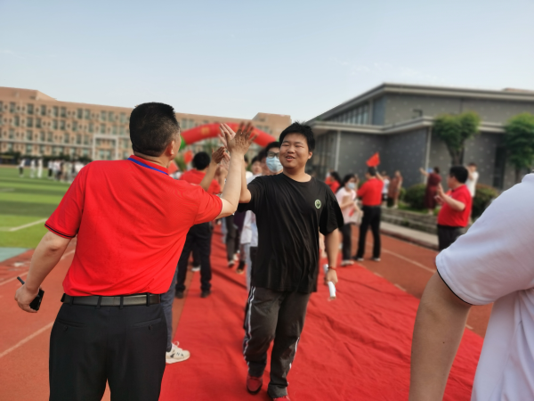 咸寧網(wǎng)訊?通訊員 鄭微:“相信自己我能行、高考加油、高考必勝、笑傲高考超越自我……”十年磨一劍,今朝露光芒。6月7日(今天),咸寧東方外國語學(xué)校全體高三老師及考生齊聚田徑場為參加高考學(xué)子們鼓勁壯行。