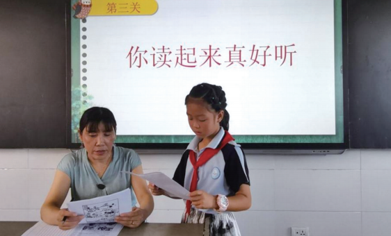 這次期末測(cè)試,所有一、二年級(jí)老師變身評(píng)委,耐心地聆聽(tīng)孩子們的心聲。一年級(jí)語(yǔ)文一共有五關(guān),迎“認(rèn)”而解、輕松區(qū)分形近字、能說(shuō)會(huì)道、背誦大比拼、看圖說(shuō)話我能行;二年級(jí)語(yǔ)文一共有六個(gè)關(guān)卡。字詞大闖關(guān)、我來(lái)說(shuō)一說(shuō)、你讀起來(lái)真好聽(tīng)、記憶高手、我是溝通小達(dá)人、我是小小演說(shuō)家,不同的是形式,相同的是對(duì)基礎(chǔ)識(shí)字、聽(tīng)說(shuō)讀能力的考查。