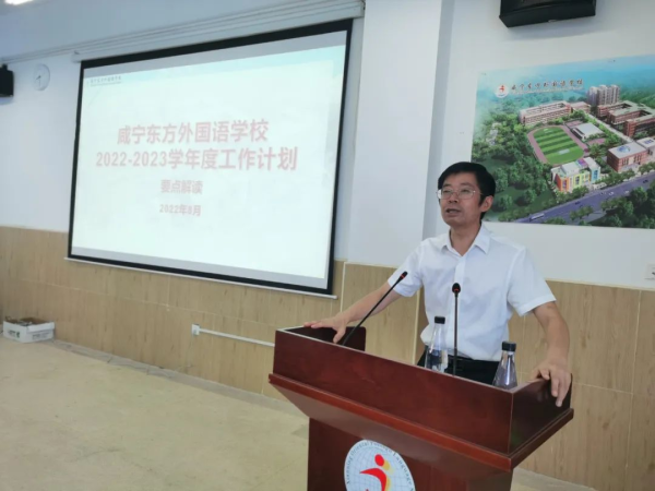8月21日上午,黨支部書(shū)記、總校長(zhǎng)韓冀就咸寧東方外國(guó)語(yǔ)學(xué)校2022-2023學(xué)年度工作計(jì)劃進(jìn)行要點(diǎn)解讀??傂iL(zhǎng)韓冀強(qiáng)調(diào),以習(xí)近平新時(shí)代中國(guó)特色社會(huì)主義思想、中共二十大會(huì)議精神為指南,全面貫徹落實(shí)黨的教育方針,尊重教育規(guī)律和青少年兒童成長(zhǎng)規(guī)律,依法規(guī)范辦學(xué),大力發(fā)展素質(zhì)教育,扎實(shí)推進(jìn)教育教學(xué)改革,全面提高教育質(zhì)量和辦學(xué)水平,為實(shí)現(xiàn)全面轉(zhuǎn)型升級(jí)、打造受社會(huì)尊敬的東方智慧教育品牌而努力奮斗的指導(dǎo)思想。