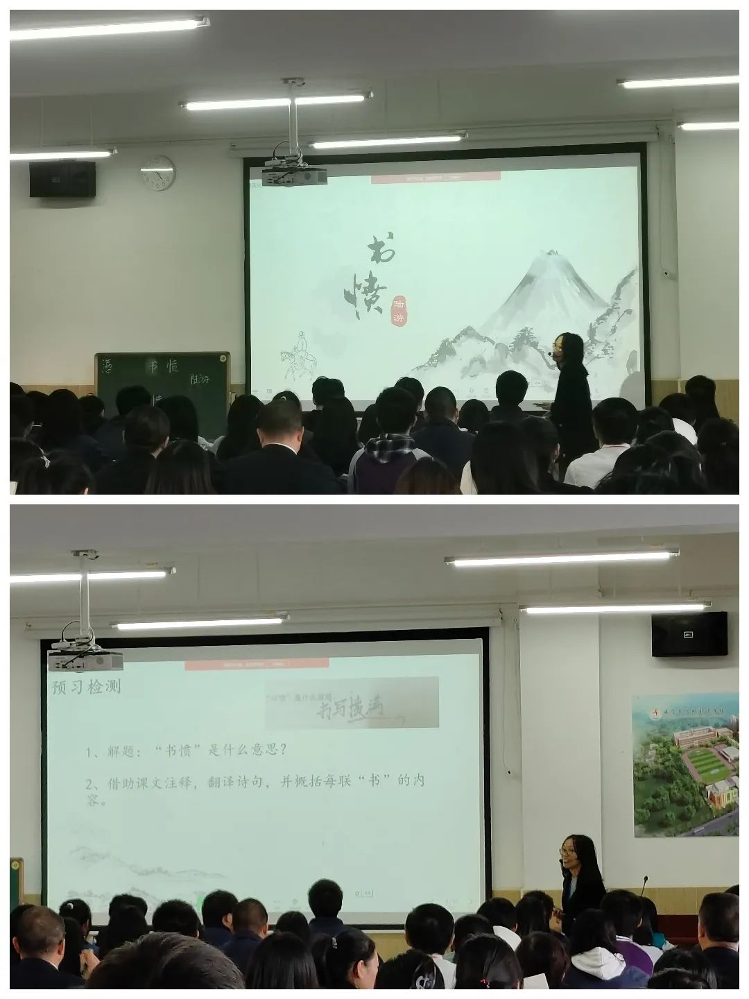 咸寧網(wǎng)訊?通訊員?鄭?微:為了進(jìn)一步提升教師專業(yè)素養(yǎng),提高教師教育教學(xué)水平,推進(jìn)課堂教學(xué)改革,促進(jìn)教師相互交流學(xué)習(xí),落實(shí)導(dǎo)學(xué)案教學(xué)、分組分層教學(xué)、信息技術(shù)融入等教學(xué)手段,轉(zhuǎn)變教師的教育教學(xué)行為和學(xué)生的學(xué)習(xí)方式,咸寧東方外國語學(xué)校于10月12日5點(diǎn)組織全體教師在二樓會議室聽取了高二年級語文老師樊娜的公開課——《書憤》,此次活動由老師林元清主持。