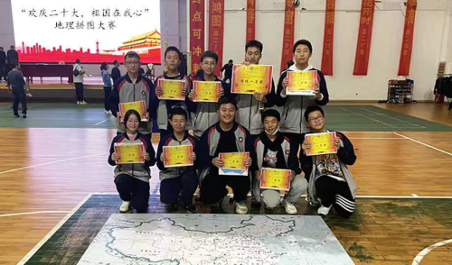 此次地理拼圖大賽分為三個(gè)環(huán)節(jié):中國(guó)政區(qū)圖大拼圖、中國(guó)政區(qū)圖小拼圖、中國(guó)各省市知識(shí)競(jìng)賽。同學(xué)們積極參加,每班10名代表選手在不同的賽場(chǎng)爭(zhēng)分奪秒地比拼,未參加的同學(xué)在場(chǎng)外圍觀,熱烈討論場(chǎng)內(nèi)同學(xué)的表現(xiàn)。當(dāng)一組選手快速完成拼圖后,組員們都忍不住歡呼著相擁慶祝,圍觀的同學(xué)們也為他們鼓掌,場(chǎng)上氣氛十分熱烈。