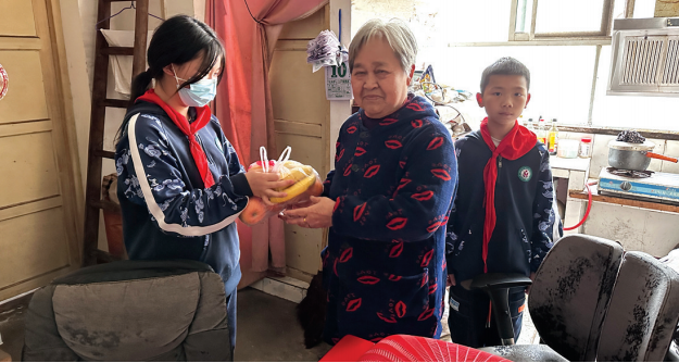 在黨員教師的帶領(lǐng)下,一部分參與潔城行動的少先隊員們,手拿清掃工具,對學(xué)校周邊、小區(qū)院子的衛(wèi)生死角、樹坑等進行一一清掃,大家不怕臟不怕累,很快一條道路就變得整潔了許多。一時間,小區(qū)院子、馬路兩邊成為了這些追“鋒”少年的舞臺。另一部分少先隊員,在老師的帶領(lǐng)下,來到學(xué)校附近的老年人康樂驛站,開展“學(xué)雷鋒”慰問活動。孩子們給老人帶去了慰問品,還陪著老人們聊天,幫老人們打掃院落。孩子們的到來,讓這些老人十分高興也十分激動,不僅驅(qū)走了老人的孤獨,還給老人們帶來了歡樂。