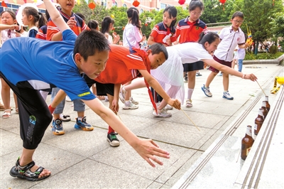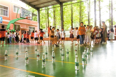 6月1日,咸寧市實驗小學(xué)校園內(nèi)熱鬧非凡:兩個舞臺同時開場,臺上學(xué)生吹拉彈唱,載歌載舞,臺下學(xué)生家長游戲不停。