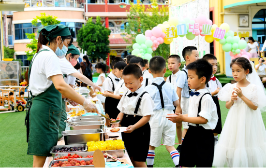 告別盛典上園長(zhǎng)及各班老師們對(duì)孩子們深情寄語,畢業(yè)自助餐上豐盛的美食讓大班孩子記得幼兒園的童年的美味,游園趣味挑戰(zhàn)游戲讓孩子們暢游在美麗校園,勇敢者之夜留宿活動(dòng)讓孩子們一起洗漱、做睡前整理,懂得離開爸爸媽媽也能照顧好自己,升旗儀式上孩子們整齊列隊(duì)看著五星紅旗冉冉升起,他們?cè)谶@里告別幼兒園生活即將開啟美好的小學(xué)生活……