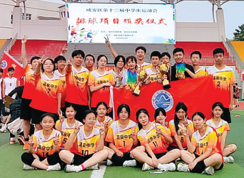 10月24日至26日,在咸安區(qū)第十二屆中學(xué)生運(yùn)動(dòng)會(huì)排球比賽中,溫泉中學(xué)男、女排球隊(duì)在參賽的11支男隊(duì)、13支女隊(duì)中,分別獲得男女隊(duì)冠軍。