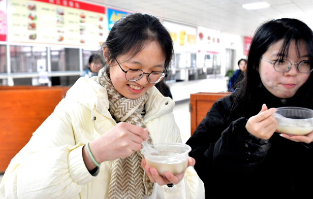據(jù)統(tǒng)計(jì),當(dāng)天鄂南高中在校的1500余名學(xué)生人手獲得了一份湯圓。
