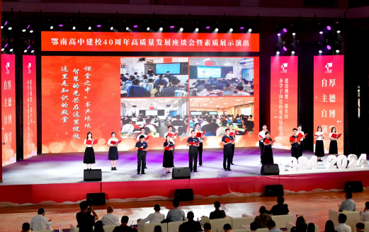 四秩鄂高,青春風(fēng)華。10月4日,鄂南高中舉行建校四十周年高質(zhì)量發(fā)展座談會(huì)暨素質(zhì)展示演出活動(dòng)。秋日的校園里,隨風(fēng)飄揚(yáng)的彩旗、飽含祝福的標(biāo)語、向陽綻放的鮮花、花香馥郁的丹桂、飽含情思的旋律無一不營造著該校喜迎40周年華誕的氛圍。