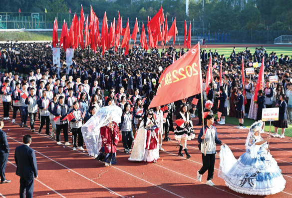 25日上午, 伴隨著運(yùn)動(dòng)員進(jìn)行曲,鮮花隊(duì)、彩旗隊(duì)、教師代表隊(duì)、各班級(jí)代表隊(duì)精神抖擻,邁著堅(jiān)實(shí)有力的步伐依次通過(guò)主席臺(tái),充分展現(xiàn)鄂南高中師生意氣風(fēng)發(fā)的精神面貌和奮發(fā)向上的昂揚(yáng)斗志。各班級(jí)代表隊(duì)以獨(dú)特的創(chuàng)意和飽滿的熱情,展示了各自的班級(jí)文化和體育精神。