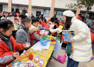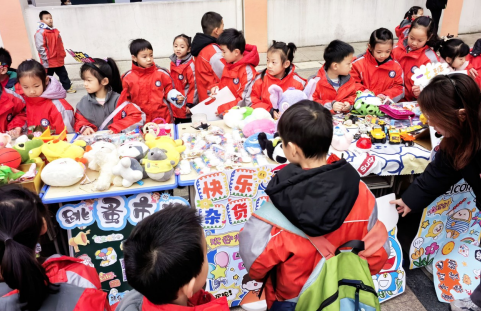 師生們穿梭于各個(gè)攤位之間,挑選心儀的物品,或與攤主討價(jià)還價(jià),或交流物品背后的故事。他們或用學(xué)校里發(fā)布的積分卡片,或用零花錢(qián)購(gòu)買(mǎi)心儀的商品,或與他人以物易物,家長(zhǎng)們參與其中,與孩子們一同體驗(yàn)這份“淘寶”的樂(lè)趣。
