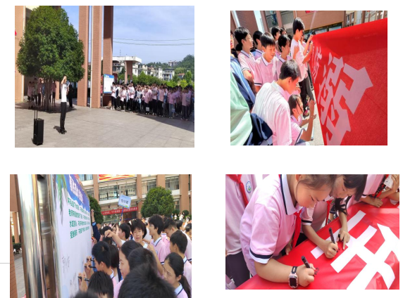 主題簽名活動中,師生們紛紛在寫有“安全第一,生命至上”的橫幅上鄭重簽下自己的名字,許下守護安全的承諾;并在政教處老師的帶領(lǐng)下,同學(xué)們莊嚴宣誓,堅決履行“七不一會”安全守則。
