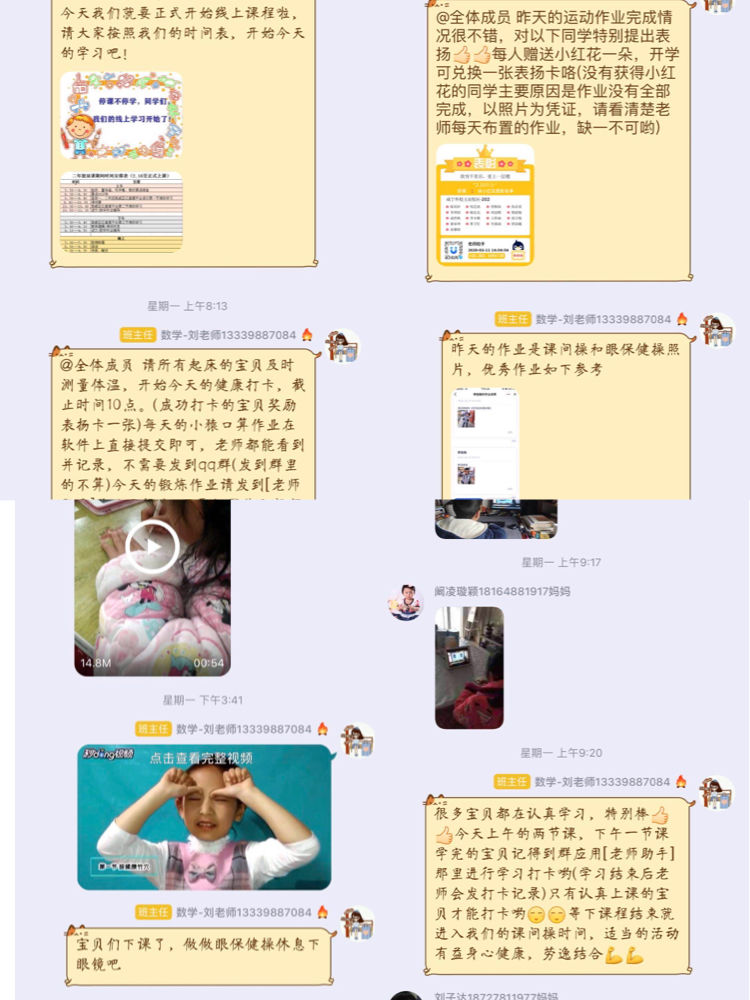 這個特別長的寒假,讓很多孩子,家長宅在家里,差點(diǎn)憋出“內(nèi)傷”。甚至有孩子哭泣著說:“我迫不及待的想出去和病毒交朋友。”孩子是天真無邪的,他不知道這病毒的可怕,也不知道,在我們這個待得不想待的家的外面,有多少人在浴血奮戰(zhàn),不懈努力,默默堅(jiān)守,只為護(hù)佑我們的平安健康。 作為班主任,在這個特殊的假期,我一直和班上的孩子保持緊密聯(lián)系,設(shè)置了不一樣的寒假實(shí)踐作業(yè),督促孩子們每天保證2小時閱讀,半小時鍛煉,線上教孩子們學(xué)唱歌,學(xué)器樂,及時疏緩不良情緒,密切關(guān)注著孩子們的身心的健康發(fā)展。