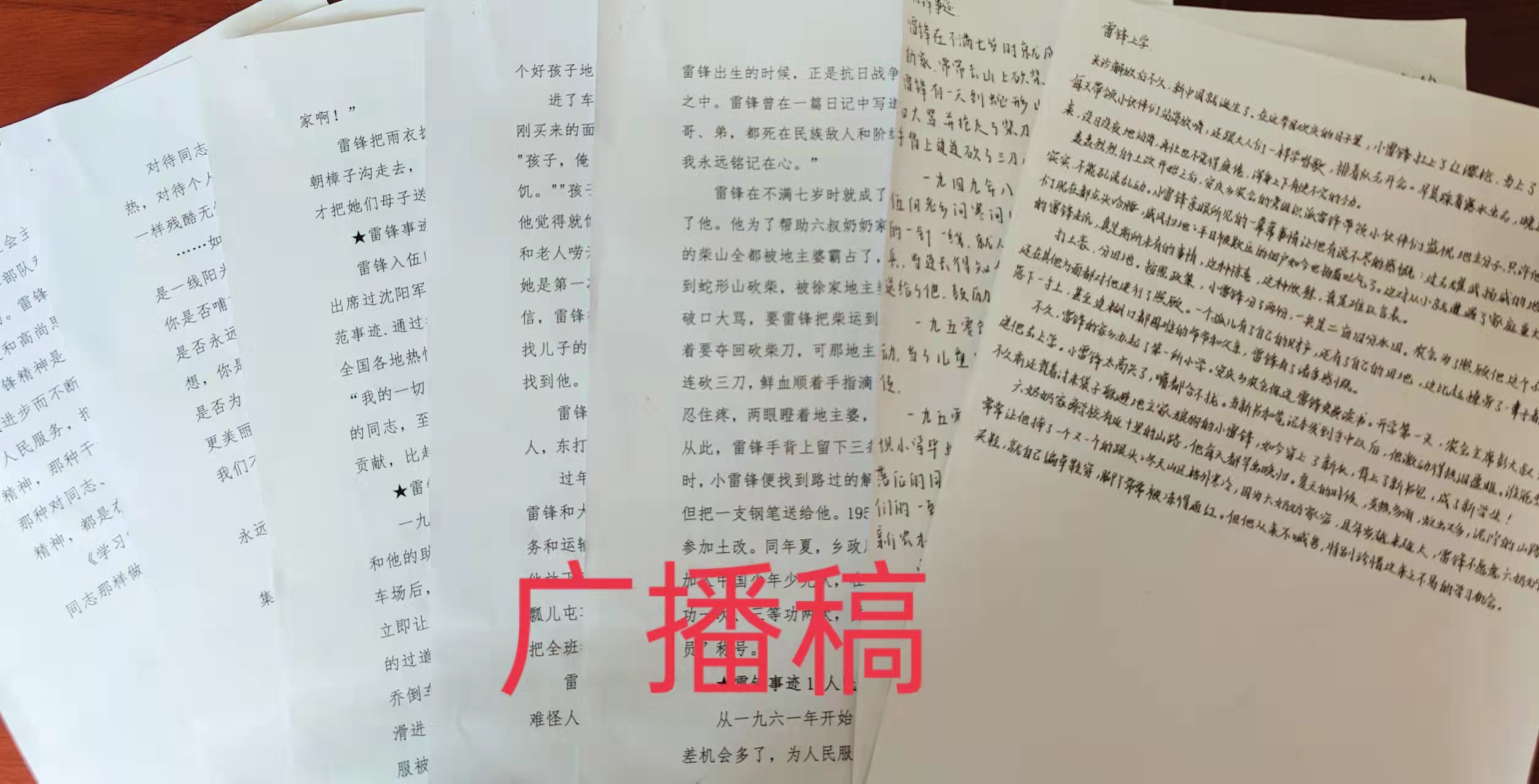 “校園之聲”廣播臺每天播讀雷鋒日記、校內(nèi)外學雷鋒先進事跡材料,播放學雷鋒歌曲等,小學部在每天下午第一節(jié)課上課之前全班進行合唱,這些都為“學雷鋒”活動營造了良好的氛圍。
