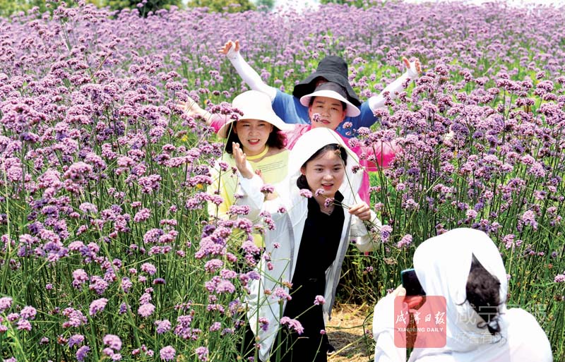 在梓山湖景區(qū),游客流連花叢,賞花拍照。