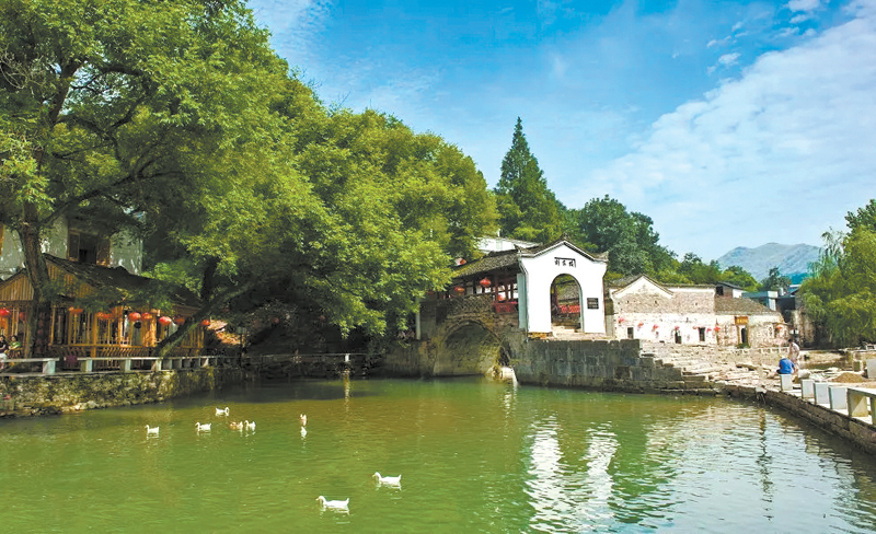 大漢皇族村劉家橋是漢朝后裔遷居于此后 ,建筑繁衍而成的古民居群,已聚族居住4個世紀,保持了較好的古村落風韻。劉家橋四面環(huán)山,一條淺淺的小河從村口淌過,水草茂盛,和古樹的倒影融為一體。