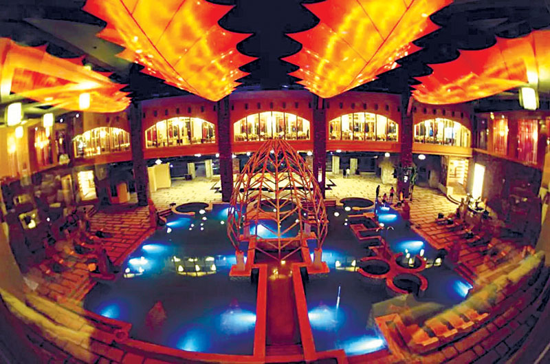 溫泉區(qū)里不僅有各種功效的加料溫泉,還有適合小孩的動(dòng)感歡樂(lè)天地溫泉,以及玫瑰飄香的花草溫泉、特殊療效的天然石板溫泉熱炕、美容功效的鹽霧浴等。
