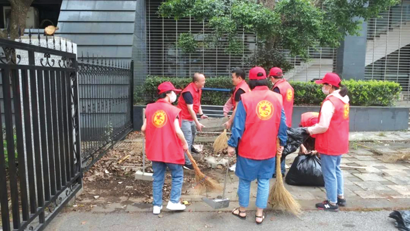 活動中,黨員同志們積極發(fā)揮奉獻精神,不怕臟、不怕累,認真清掃雜物垃圾、清理落葉、砂石,路過的群眾紛紛點贊。