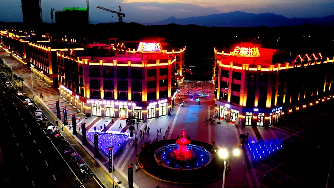 商業(yè)街內(nèi)頭頂是一排排彩燈,孩子們穿梭在其中嬉戲玩鬧。晚上沒有白天的燥熱感,正適合逛街購物。這里品類一應俱全,琳瑯滿目。商鋪外還有可供休息的桌椅,逛累了可以歇歇腳,欣賞華麗的夜景。
