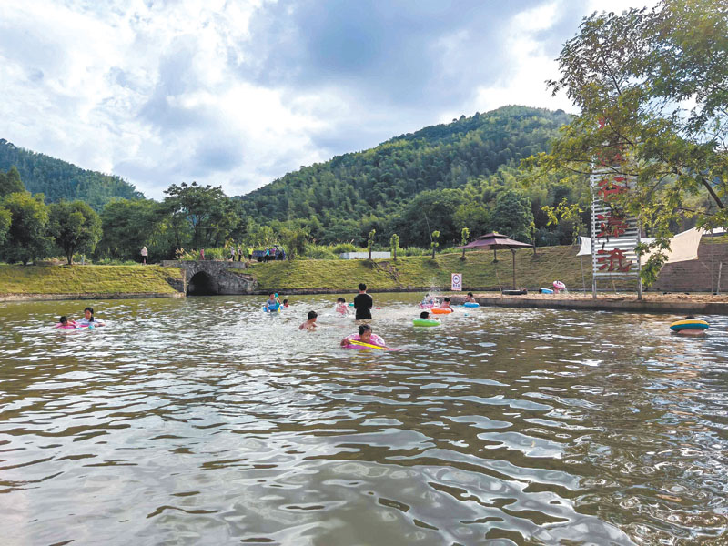 古田村相關(guān)負(fù)責(zé)人告訴筆者:“游泳樂(lè)園的開(kāi)放時(shí)間在下午三點(diǎn)到晚上八點(diǎn)左右,在此期間,村‘兩委’、志愿者會(huì)在水池周?chē)M(jìn)行安全巡查,確保小朋友們玩水時(shí)的安全。晚上八點(diǎn)鐘之后我們就會(huì)通過(guò)排水口把水放干,第二天早上再重新引水。一是保證水質(zhì)干凈,二是避免小朋友在無(wú)人看管期間私自下水?!?/p>