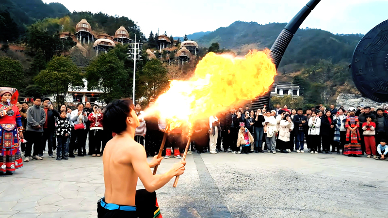 在通城藥姑山古瑤村,“國潮游古瑤·妙趣迎龍年”主題活動深受游客歡迎,廣東游客陳先生說:“在抖音上看到古瑤村的視頻,覺得風(fēng)景很美,這次身臨其境,果然沒來錯!”