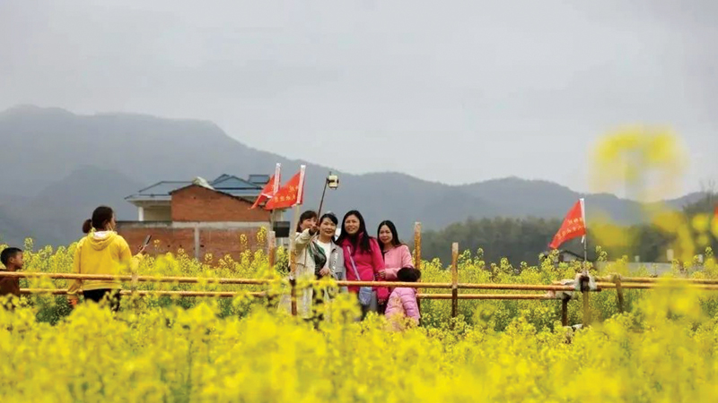 田壟上、小溪邊、村灣里、古樹下,目光所及村灣盡披“黃金甲”。精選在路邊的現(xiàn)代化小洋樓被環(huán)繞在金黃的油菜花間,讓人感覺眼前一亮,這就是鄉(xiāng)村的色彩,更是振興的春天。