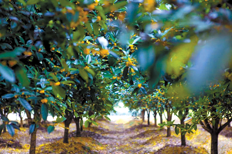 咸寧號稱香城泉都,泉指溫泉,香則主要指桂花。在咸寧,處處可見桂花的身影,到了時節(jié),一簇簇嫩黃色小花掩映在橢圓形葉片下,散發(fā)出的香甜清可絕塵,濃濃遠(yuǎn)溢。