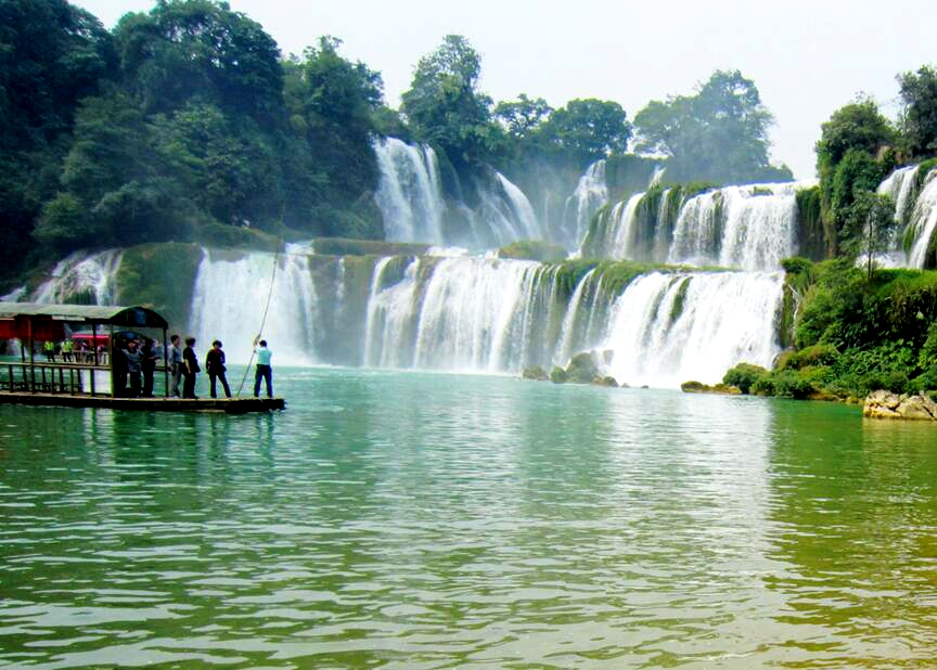 金秋十月的南國(guó),還彌漫著盛夏的余威,一場(chǎng)秋雨反而讓空氣變得沉悶起來。德天大瀑布位于邊境小城廣西大新縣境內(nèi),曾入選過中國(guó)十大最美瀑布行列。在我看來,德天大瀑布完全不亞于黃果樹瀑布,甚至比黃果樹瀑布還要美,還要壯觀,只是因?yàn)榈绿齑笃俨加幸徊糠痔幵谠侥暇硟?nèi),不能完全算中國(guó)的大瀑布而已。