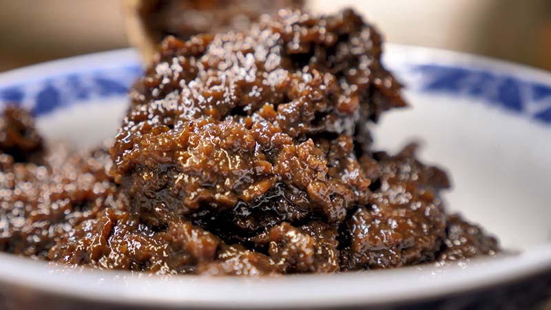 麥醬燒肉從做法看其實簡單。關鍵在于麥醬特有的香甜風味,得由農家多年自釀所積累的經(jīng)驗來保證質量。整個釀造過程中,季節(jié)很重要。入伏天上到瓦面將已發(fā)酵好的麥醬日日曬制,是保證獨有風味的奧秘所在。