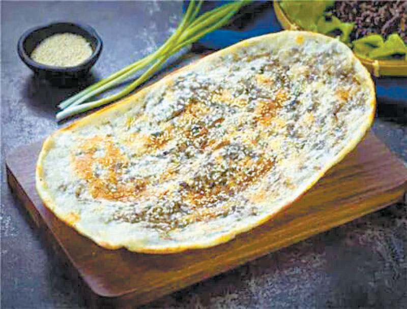 鍋盔是咸寧街頭常見的一種小吃,記得很小的時候,它就是簡單的在面粉里面加點蔥花和食鹽,捏成橢圓形的餅后在爐壁上一貼一烤,那種咸咸的蔥香味,直擊心靈的深處,留下了那個時代最好的美味記憶。