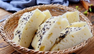 發(fā)糕也可用架子支撐著直接放在煤爐子上烤,當一邊出現(xiàn)泡泡時翻烤另一邊,烤得年糕鼓脹時即可,也可用糯米和大米按一定比例混合后制作。