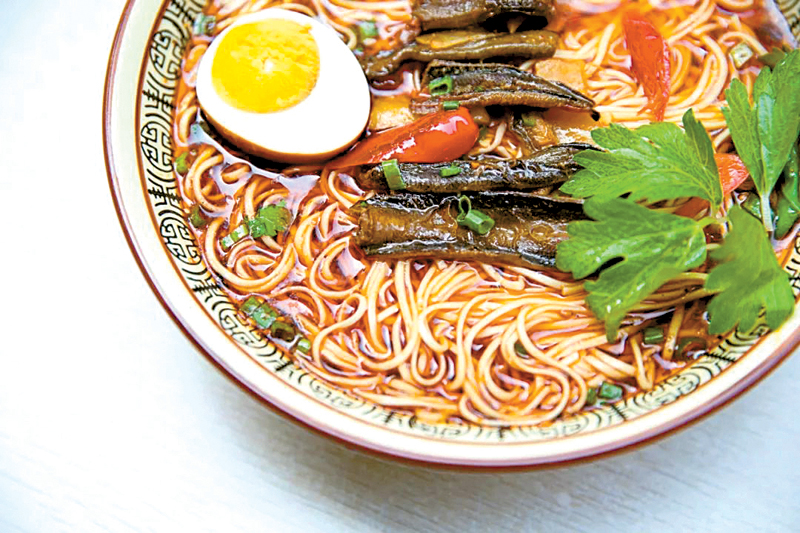 臘肉鱔魚面其主料是黃鱔和臘肉。制作過程也簡單粗暴,經(jīng)過爆炒和水煮,再放在爐子上慢慢煨,經(jīng)過時(shí)間的打磨,主食材與輔料充分交融,成品臘肉和鱔魚香嫩,肥而不膩。