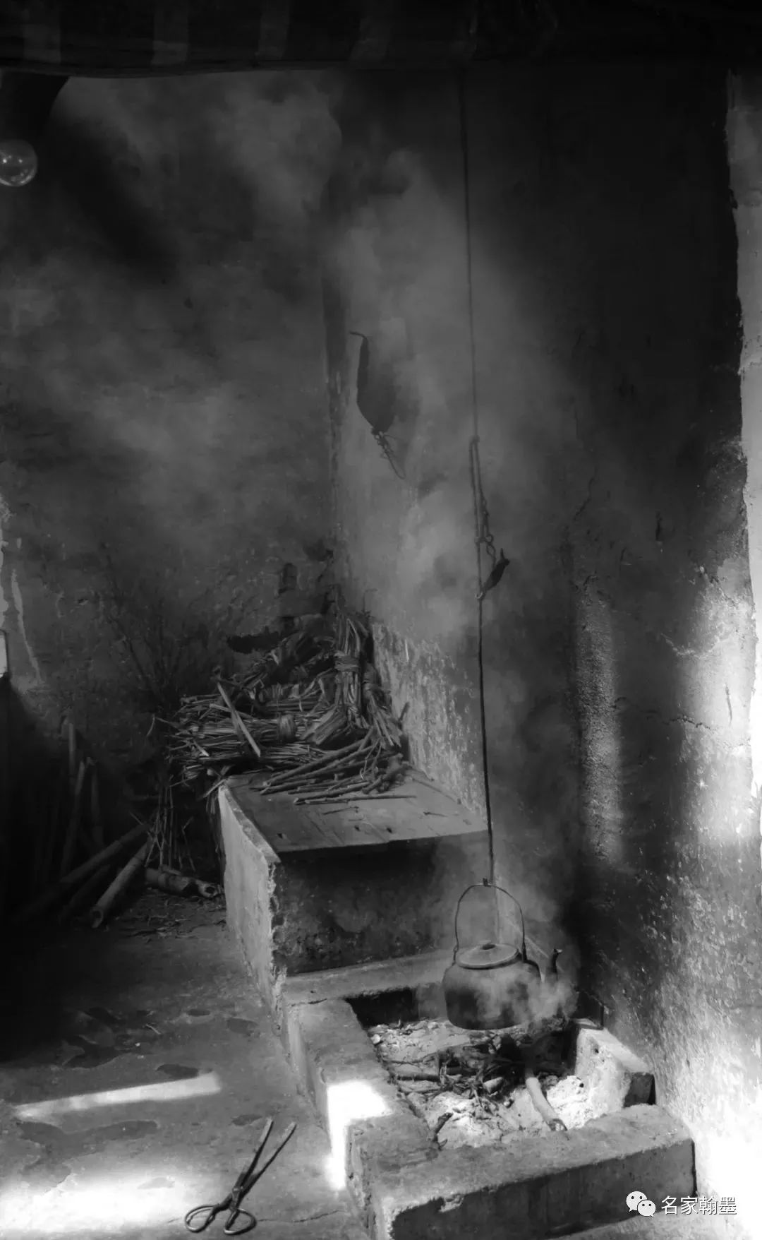 在這里,火就是人們每一天的生活。廚房中,靠墻挑揀一處較為平整的地方,用幾塊青磚或條石,依墻堆壘圍成一個四方形,便成了火塘?;鹛辽戏降牧荷洗瓜驴烧{(diào)節(jié)長短的鐵掛鉤,吊著水壺或鐵鍋。