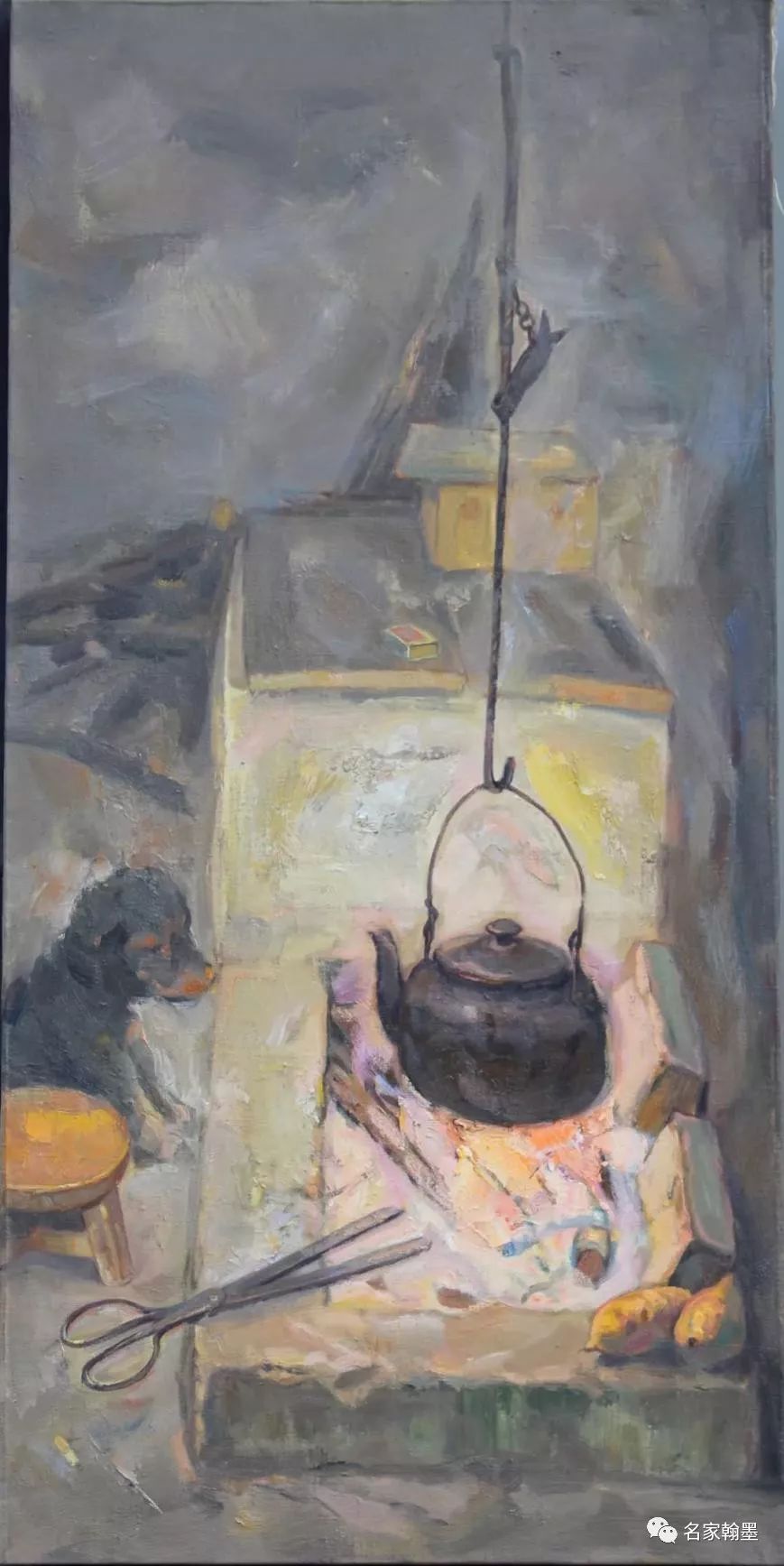 在他的畫筆下,火塘部分的喪失了固有的概念。實際上,火塘總是和人密切關(guān)聯(lián)在一起,由此種聯(lián)結(jié)中派生出了人對火的依賴和敬畏,而黃帥軍筆下的火塘幾乎總是冷寂的,像一片廢墟或冰原。哪怕是正在熊熊燃燒著的火塘,也有種獨舞的寂寥。就好比一位無人祭拜的神祇,或者一束來自死亡星球的光,真實的本體已經(jīng)弱化到最微小,卻還在傳達著某種執(zhí)著的眷念與渴望。