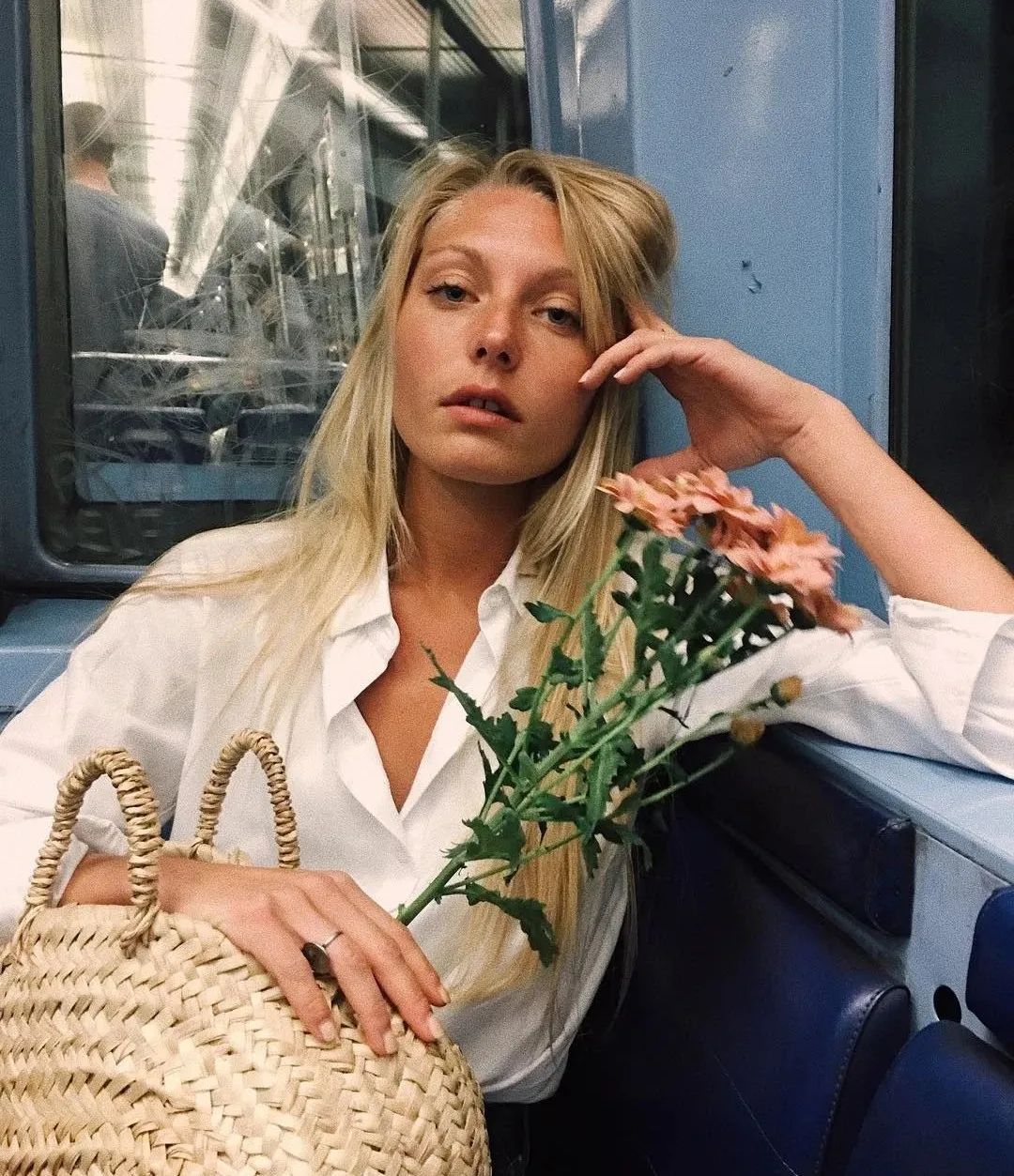 她的日常曬照蠻注重藝術(shù)感的,像這張穿著上沒什么特別的,但是加上大草帽和珍珠耳環(huán),竟也有了幾分油畫的美感。