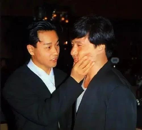 這張哥哥一手捏著成龍大哥的照片也很有趣了,這很有可能是成龍大哥頭一次有被認(rèn)為有小弟的感覺。相信這個(gè)姿勢,除了張國榮也沒人敢這么做了,乖乖被捏的成龍看上去好可愛有沒有。