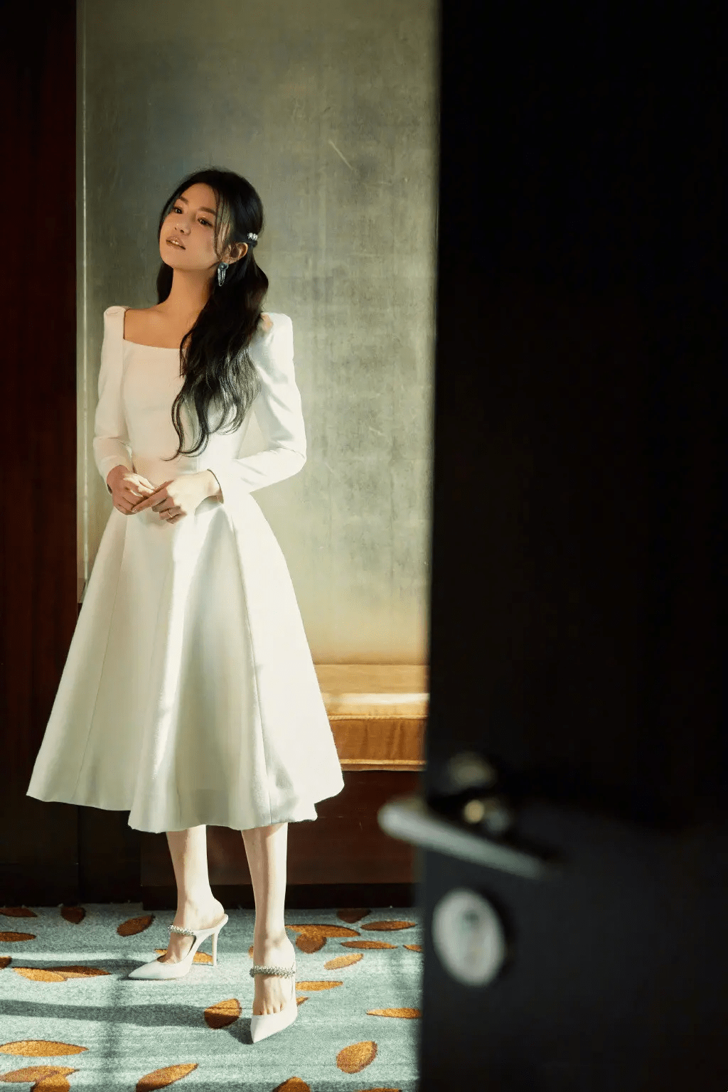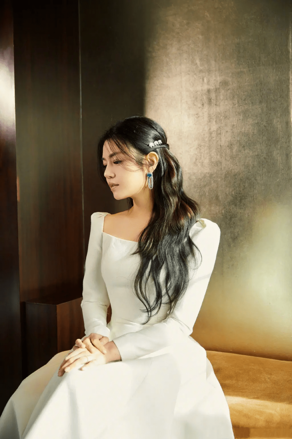 陳妍希,一身白色長裙,搭配微卷長發(fā),盡顯溫柔優(yōu)雅的氣質(zhì)