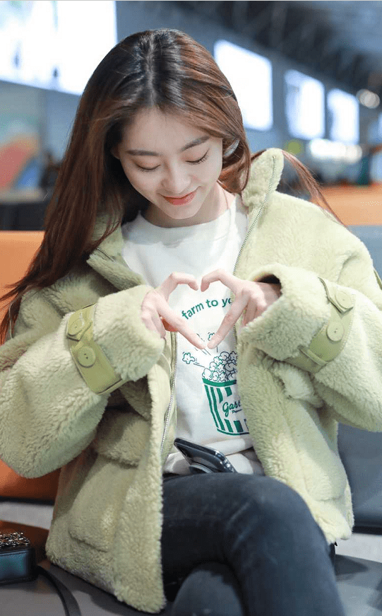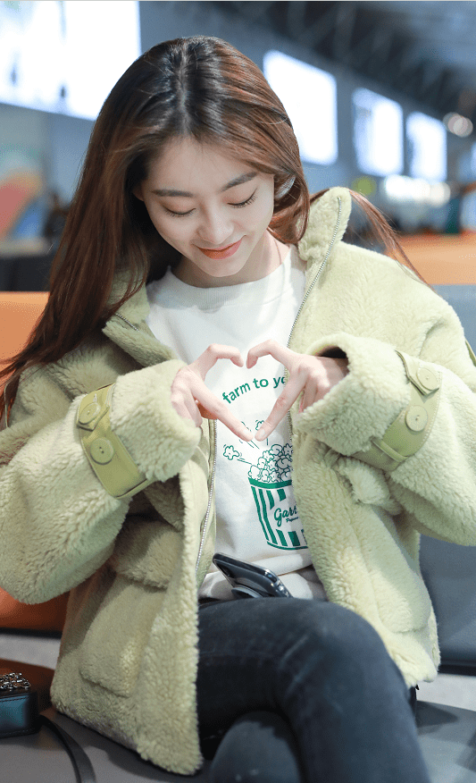 面臨鏡頭祝緒丹暴露甜蜜笑臉,用手比出心形,真的是美呆了,在絨毛衣服的烘托下,顯得她面色紅潤的很。歪著頭對著鏡頭淺笑,的確像一只萌呆了的小公主。
