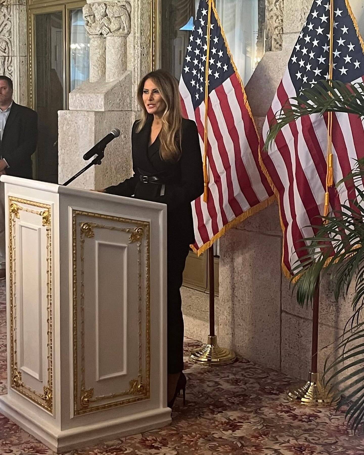 畢竟之前當(dāng)過第一夫人,所以梅拉尼婭即使是單獨(dú)上臺演講,也是輕松駕馭。梅拉尼婭的身材可真是好,尤其是穿上這身黑色,更是顯瘦,氣質(zhì)絕了。