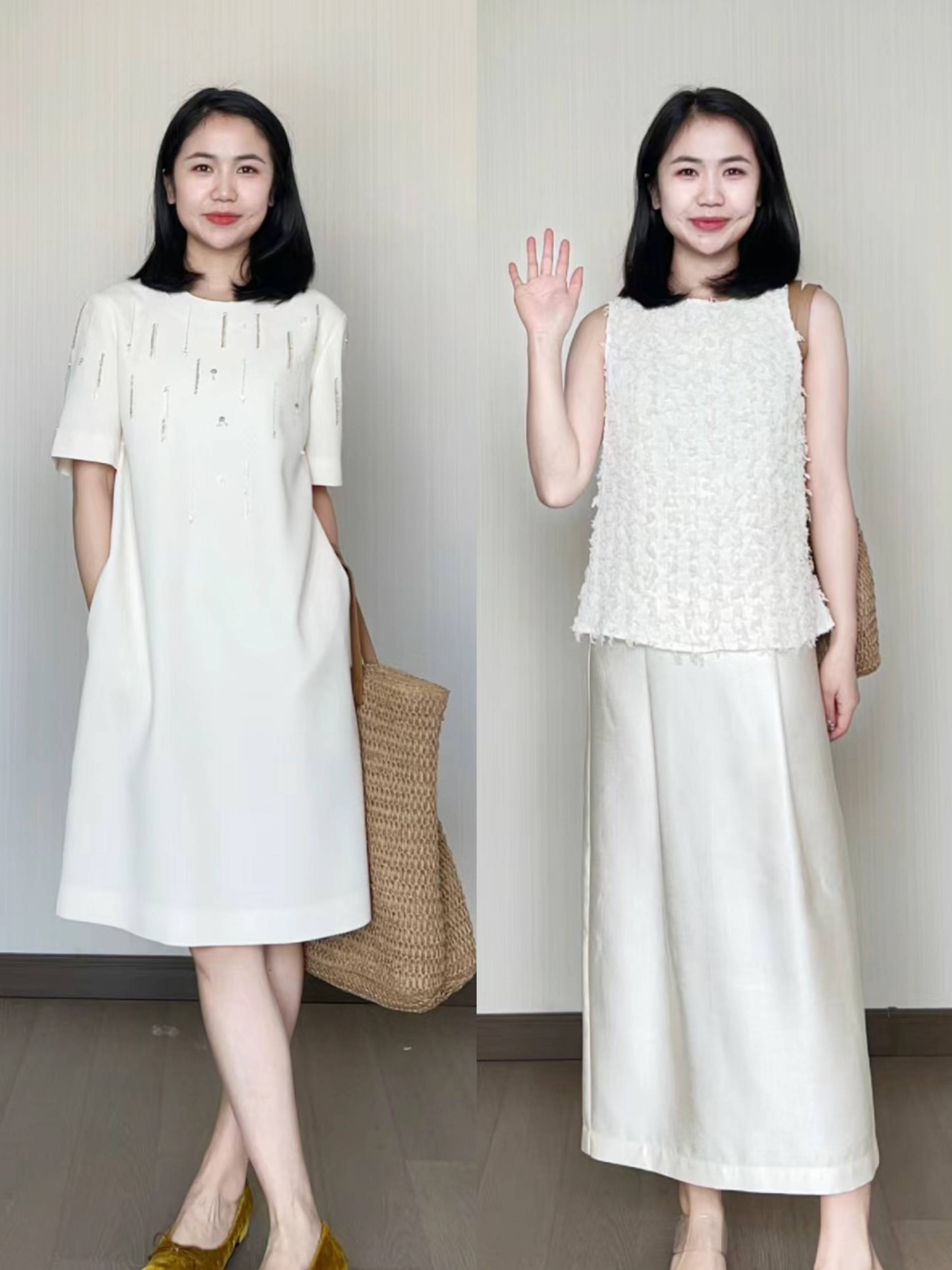 日常的搭配中,過膝連衣裙更加婉約柔和。尤其是白色系的過膝連衣裙,也會給人一種清新柔和的美。稍微寬松的過膝半身裙,還可以掩蓋腿粗、腿型不好的問題。