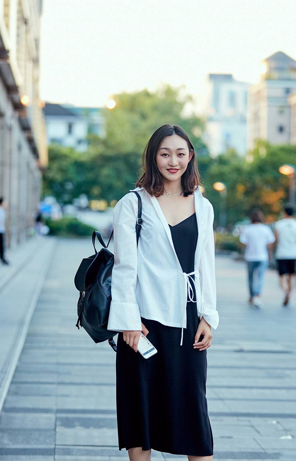 論文藝范兒如何打造,黑白色調(diào)的顏色搭配必不可少??纯瓷蠄D這位美女就知道了,白色襯衫搭配黑色的半身裙,美女腳踩一雙涼鞋,文藝范兒十足。